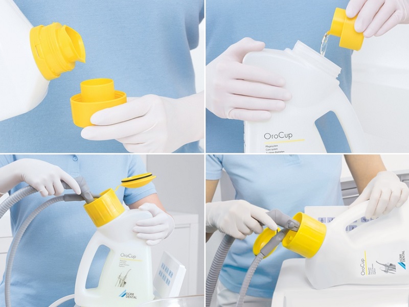 Sản phẩm khử trùng và làm sạch tại khu vực đặc biệt đó là màu vàng, dung dịch diệt khuẩn này giúp loại bỏ mầm bệnh từ bộ phận hút nước bọt , hút phẫu thuật.