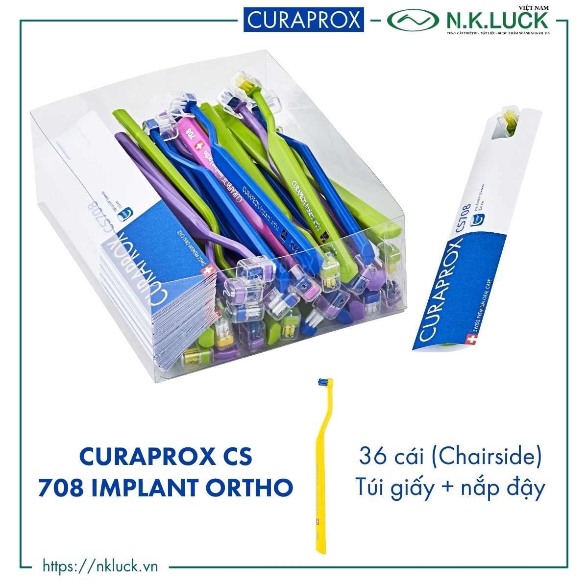 - 01 hộp gồm 36 bàn chải, nắp đậy và túi giấy