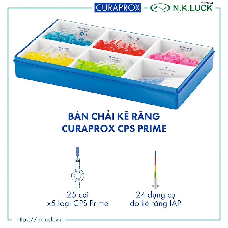 - Bàn chải kẽ răng Curaprox CPS Prime: Tay cầm UHS 409, nắp đậy (mỗi loại 25 cái)