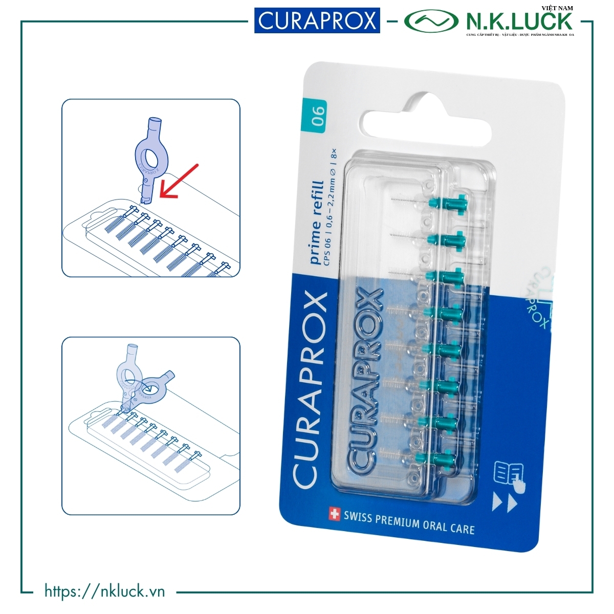 - Sản phẩm gồm: 8 đầu thay cho bàn chải kẽ răng Curaprox (nhiều kích thước)