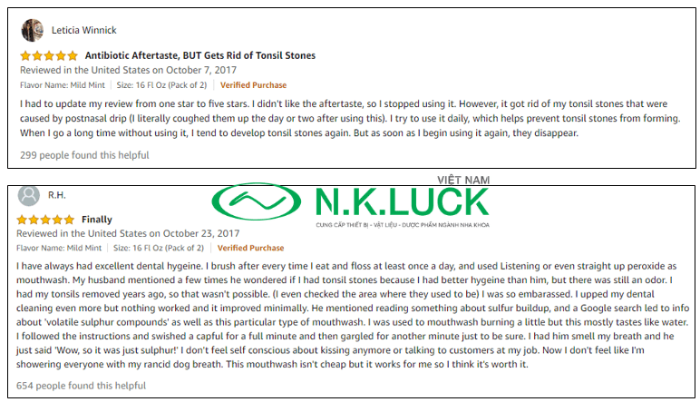 Các bình luận tích cực của người sử dụng TheraBreath Oral Rinse trên Amazon