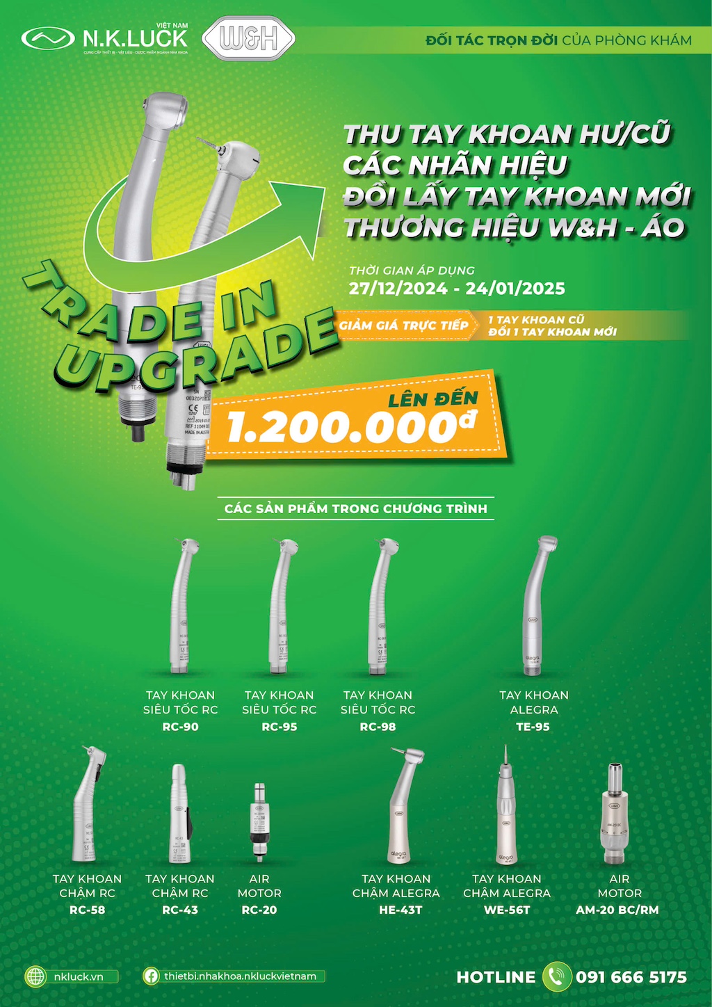 ✅ Đổi lấy tay khoan W&H chính hãng với mức giá ưu đãi đặc biệt.