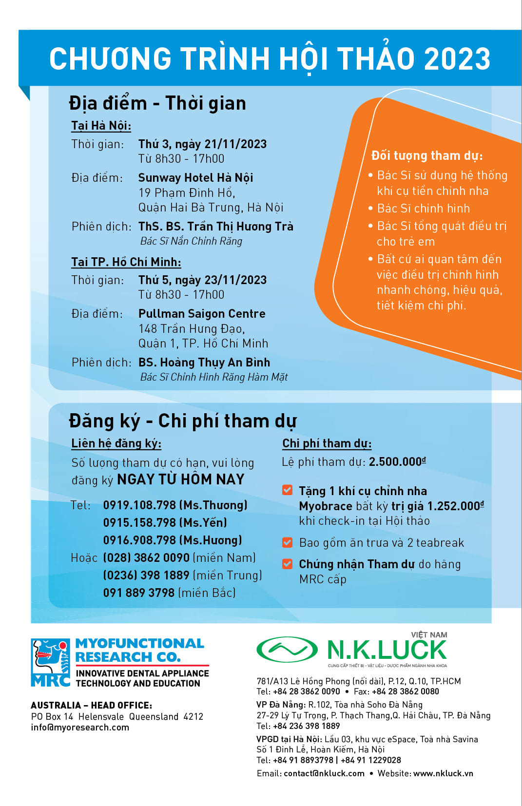 Quý Bác sĩ hãy nhanh tay đăng ký để nhận ưu đãi và quà tặng do N.K.LUCK tài trợ nhé!