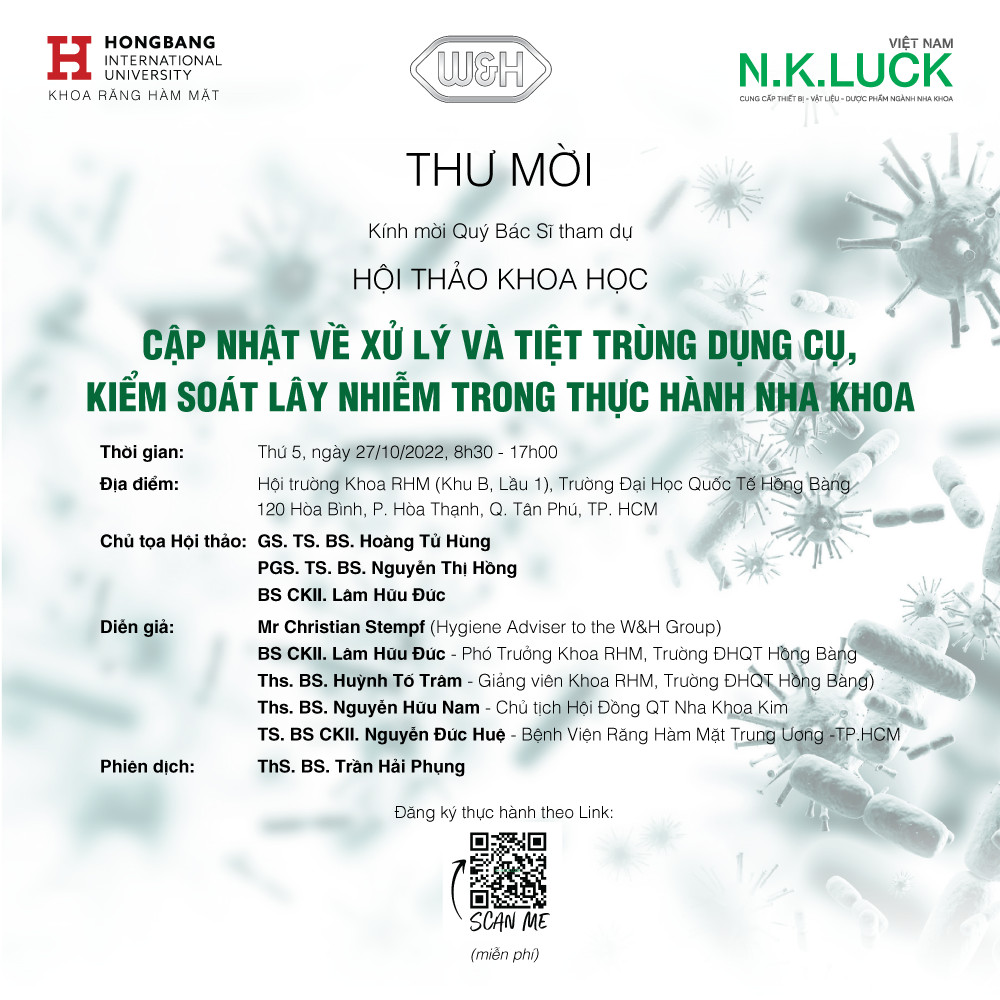 nhật về xử lý và tiệt trùng dụng cụ – Kiểm soát lây nhiễm trong thực hành nha khoa” tại Trường Đại học Quốc tế Hồng Bàng (HIU) vào 27.10.2022.