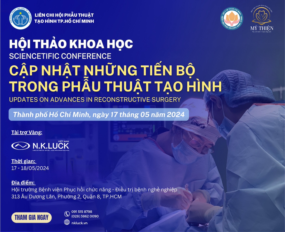 N.KLUCK xin trân trọng được mời Quý Bác sĩ và Quý Đơn vị đến tham dự Hội Thảo Khoa Học với chủ đề “ Cập nhật những tiến bộ trong Phẫu thuật Tạo hình” được tổ chức bởi Liên chi hội Phẫu thuật Tạo hình TP.HCM.