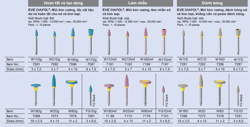 Mũi mài Eve Diapol hiệu quả và tiết kiệm với hệ thống 3 bước.