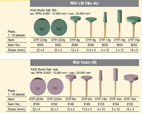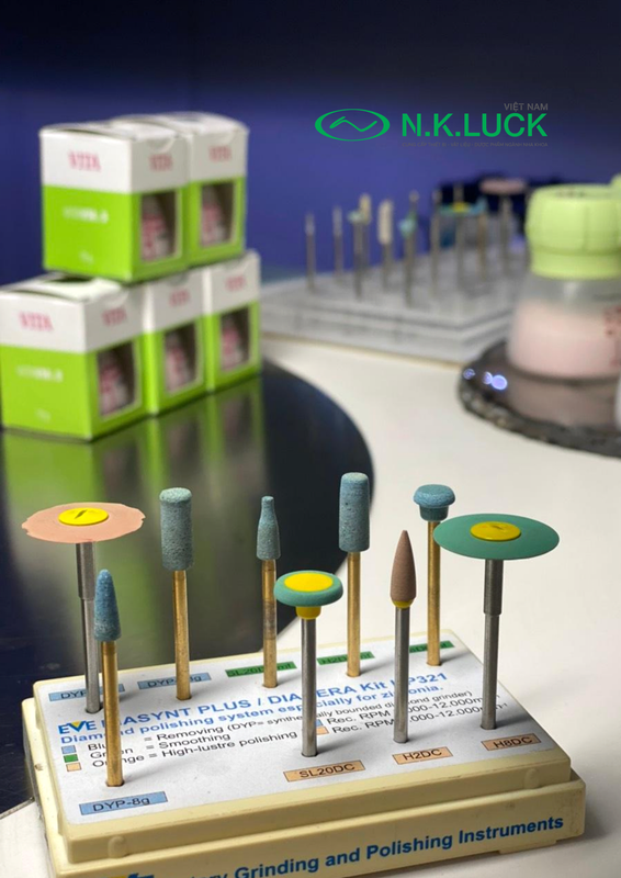 Kích thước hạt kim cương mịn, dùng đánh bóng 2 bước, đặc biệt cho phục hình CAD/CAM và sứ oxide.