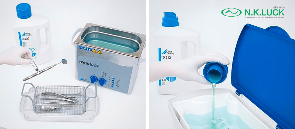 – Làm sạch mũi mài: Sau khi ngâm mũi mài cần được rửa bằng nước sạch trong khoảng thời gian ít nhất 1 phút. Sau đó, sử dụng máy làm sạch siêu âm với tần số thấp để loại bỏ những mảnh bám, cặn bẩn trên mũi mài.