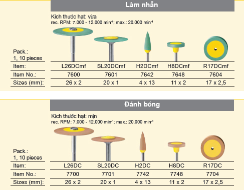 Mũi mài kim cương Diacera hệ thống đánh bóng 2 bước.