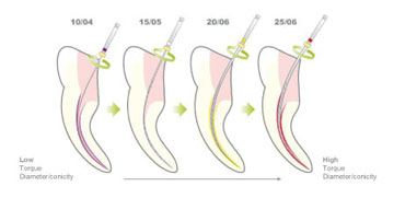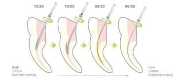 - Trước hết, các trâm ngắn, dày được sử dụng để mở rộng ngay vùng một phần ba chân răng của ốn tủy.